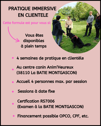 🟢 Format en centre : 4 semaines intensives de pratique en clientèle (centre Anim'heureux en Isère)